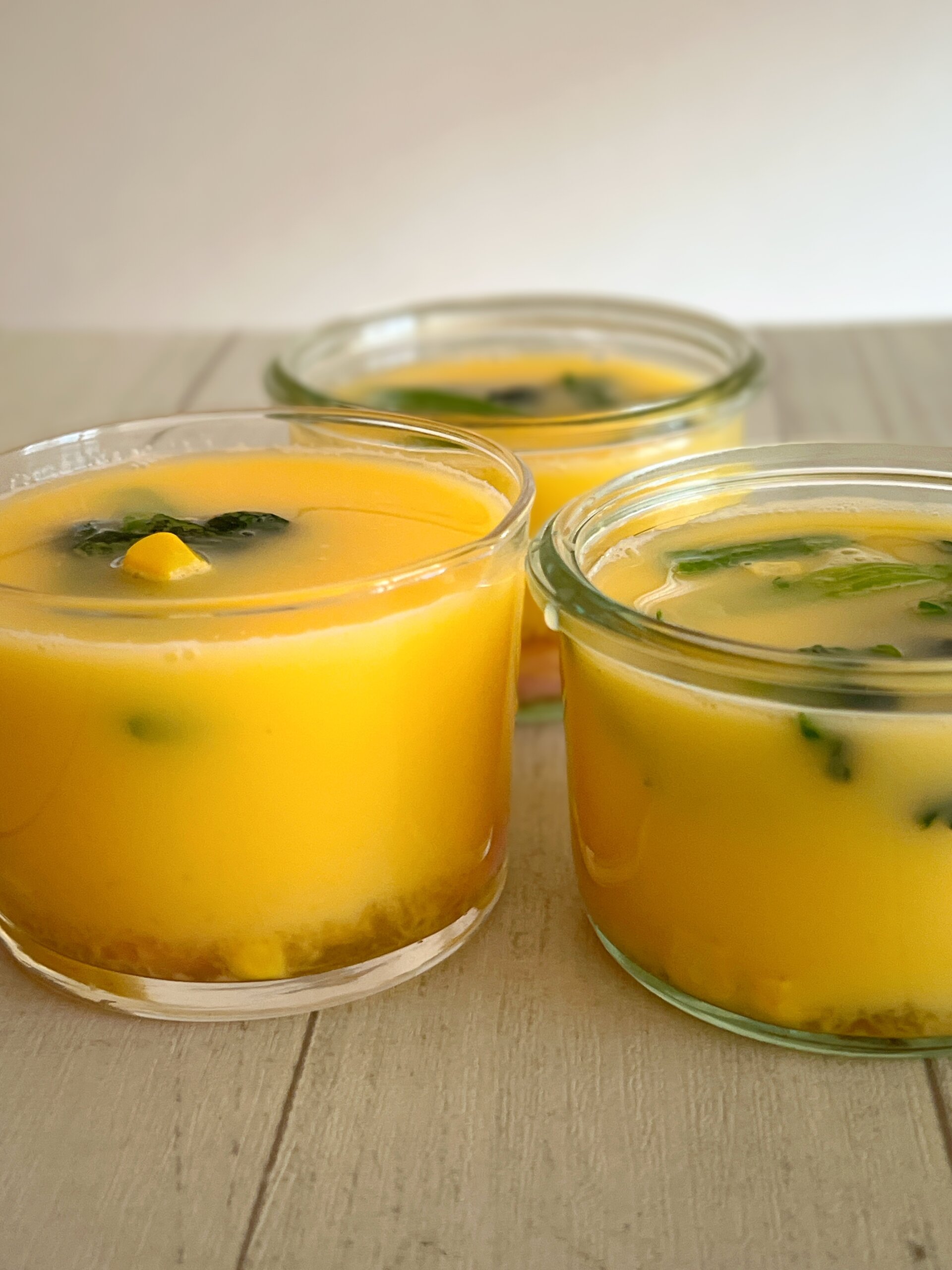 - 容器に具材を入れ、卵液を静かに注ぎます。